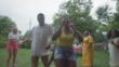 African American couple dances in a soul train line during backyard party - Vídeo de stock 4K