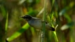 Pájaro - Común Saltamontes-warbler ( Locustella naevia ) se sienta en un arbusto de cañas. - Vídeo de stock 4K