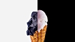 Time-lapse of a black and a white ice cream cone melting back and forth. Shot in 4K resolution on a black and white background respectively.
