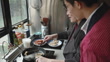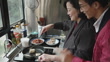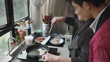 Chinese senior woman showing son preparing tradition chinese food carrot cake for chinese new year family reunion dinner