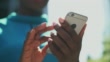 Close up of woman scrolling and messaging on smart phone - Vídeo de stock 4K