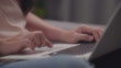 Close up shot of female hand using laptop for working, learning, searching, or surfing social media at home.
