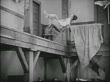 B/W 1924 cowboy (Ben Turpin) nearly falling off of ledge while sleeping + leaning on chair - Vídeo de stock