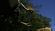 A crowned crane lands on a tree stump. - Vídeo de stock HD