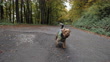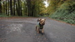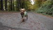 Lindo perro terrier corriendo en el bosque de otoño - Vídeo de stock 4K