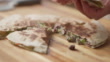 Corte de quesadillas vegetarianas en tabla de cortar madera - Vídeo de stock 4K