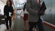 A diverse group of business people walking through an office.