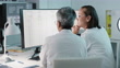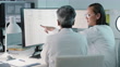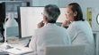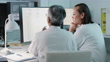 Médicos, aprendizaje y trabajo en equipo en pantalla de computadora con análisis de datos, informe de laboratorio u hoja de cálculo de estadísticas por la noche. Científicas, mentoras o estudiantes, apoyo para pasantías médicas o investigación de e - Vídeo de stock 4K