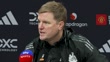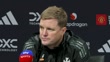MANCHESTER, ENGLAND - DECEMBER 30: Eddie Howe, Newcastle United manager, speaks on Dutch defender Sven Botman after the Premier League match between Manchester United FC and Newcastle United FC at Old Trafford on December 30, 2024 in Manchester, England. (Footage by Niche Sport Media via Getty Images)