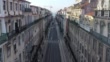 Empty Lisbon street from above, drone footage.Rua do Ouro
