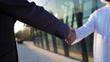 European and Arab businessmen shaking hands. Close up.