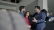 Mecánico amigable hablando con el cliente de pareja sobre el trabajo que hacer en su coche y apretón de manos después de hacer un acuerdo - Vídeo de stock 4K