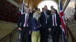 Sir Keir Starmer (Labour Leader) and John Healey (Shadow Defence Secretary) posing for photocall on steps with Labour candidates who are former military personnel - Fred Thomas (Plymouth Moor View), Bayo Alaba (Southend East and Rochford), Mike Tapp (Dover and Deal), Will Stone (Swindon North), Calvin Bailey (Leyton and Wanstead), Alistair Carns (Selly Oak), Alex Ballinger (Halesowen), Matt Aldridge (Salisbury), Paul Foster (South Ribble) and Louise Jones (North East Derbyshire)