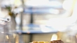 Gourmet egg salad sandwich, cut in half, in bright sunny restaurant - Vídeo de stock 4K