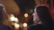 Group of friends walk down a city sidewalk during a night out clubbing, away from camera