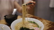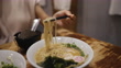 Hand using chopstick picking hot soup ramen noodle with Miso soup noodle Japanese style - Vídeo de stock 4K