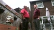Matt Speight ('donated blood recipient) set-up chatting with his father Rob in garden/