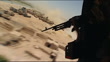INT HELICOPTERMachine gun mounted on helicopter as along over British army base