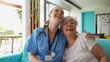 Profesional de la salud de atención domiciliaria abrazando a un paciente mayor - Vídeo de stock 4K