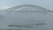 - Vehicles are in traffic at foggy Asahi Bridge over Ishikari River with floating ice blocks.