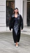 BERLIN, GERMANY - AUGUST 3: (SLOW-MO) Jacqueline Zelwis wears black Lala Berlin leather jacket & leather skirt, Understatement Body