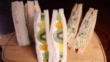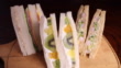 4 kinds of sandwiches that can readily be found at most Japanese convenience stores like 7-Eleven, Family Mart, Lawson and Mini Stop among others. These sandwiches include fruit cream with Kiwi, Peach, Pineapple and Mandarin orange with cream. Broccoli and prawns or shrimp. Tuna and lastly egg mayonnaise, ham, lettuce and cheese.