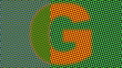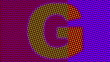 A letter G blinking in very vibrant halftone colors transitioning from plain to outlined