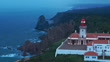 Faro y acantilados sobre el Océano Atlántico en Cabo da Roca, el punto más occidental de la Europa continental - Vídeo de stock 4K