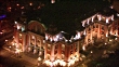 Zoom out from Central Public Hall at night; long shot osaka Osaka, Japan
