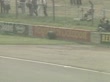 NORTHAMPTON, ENGLAND - MAY 12: (AUDIO OMITTED) A loose tyre rolls across the track and along the barrier before coming to a stop as the camera pans across to the Canon Porsche 956 of Jonathan Palmer and Jan Lammers sans front left tyre driving into the pit lane during the Silverstone 1000km at Silverstone Circuit on May 12, 1985 in Northampton, United Kingdom. (Footage by Duke Video/Getty Images)