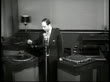 MOT 1947: U.S. RADIO DISK JOCKEY: MS Martin Block w/ phonograph machines & microphone (WNEW Radio studio). REPRISAL: VS Block '...we go to stage 2 for the sweetest music... Guy Lombardo & the Royal Canadians ' inserting record spinning.