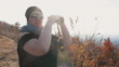 Madura mujer optimista corporal positiva explorando el Bosque Nacional de Nantahala con el binocular. - Vídeo de stock 4K