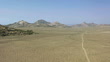 MS AERIAL TU Old trail to hills at West Sage Hen Rocks / Riverton, Wyoming, United States - Vídeo de stock HD