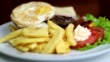 Abre La hamburguesa en un plato - Vídeo de stock HD