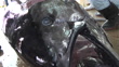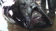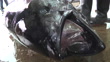 CU shot of the head of a landed pacific bluefin tuna, binominal name Thunnus orientalis, at fish market