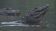 Pan right over Chinese alligator calling in lake, Xuancheng - Vídeo de stock HD