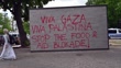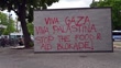 BERLIN, GERMANY - MAY 15: People walk past a wall with pro Palestinian slogans written on it during a demonstration to commemorate the 77th anniversary of the Nakba on May 15, 2025 in Berlin, Germany. The Nakba refers to the violent expulsion by Jewish paramilitaries and, following the creation of the state of Israel, by the Israeli military of approximately 750,000 Palestinian Arabs from their lands in 1948 in what was then Mandatory Palestine. Today's commemorations are taking place as many Palestinians in Gaza face starvation due to the Israeli blockade of humanitarian assistance. (Footage by Craig Stennett/Getty Images)