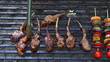 Young women preparing lamb chops and skewers on the barbecue in the nature