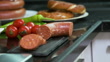 Preparación de salchichas turcas para freír - Vídeo de stock 4K