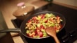 Preparación de verduras en la sartén para cuscús - Vídeo de stock HD