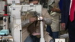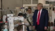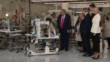 U.S. President Donald Trump watches an employee demonstrate a sewing machine at the new Louis Vuitton factory in Alvarado, Texas. (No audio)
