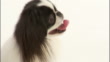 A pretty Japanese Chin dog looks around with its big, round eyes.