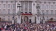 Trooping the Colour: Queen Elizabeth and royal family watch flypast from Buckingham Palace balcony; UK, London: Queen Elizabeth and members of royal family watch RAF fly-past from Buckingham Palace balcony following Trooping the Colour ceremony.