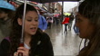EXT / RAININGEliza Doolittle (Singer) interview SOT CUTAWAY Pedestrians along past sign for Camden Market
