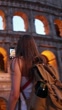 Rear view of traveler pausing to take photos of the iconic site Colosseum