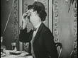 B/W 1920's man (Ben Turpin) trying to eat twisting, bending piece of asparagus - Vídeo de stock