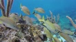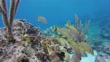 Bluestriped grunt (Haemulon sciurus) swimming around soft coral