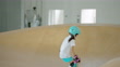 she is unstoppable; the game is tough, but the girl has confidence that she can win it. Asian adolescents skateboard without fear or concern for her safety or health while using a helmet and other protective clothing on a ramp.