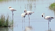 MS Shot of Lesser Flamingos preening in water / Cape Town, Western Cape, South Africa - Vídeo de stock HD