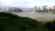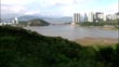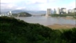 Skyscrapers and forested hills surround a bay in Hong Kong. - Vídeo de stock HD